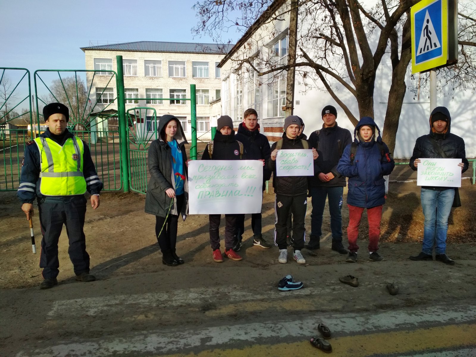 У школы совместно с представителями отделения ГИБДД МО МВД России "Яранский" после мероприятие была сделана инсталляция "Они могли закончить школу".