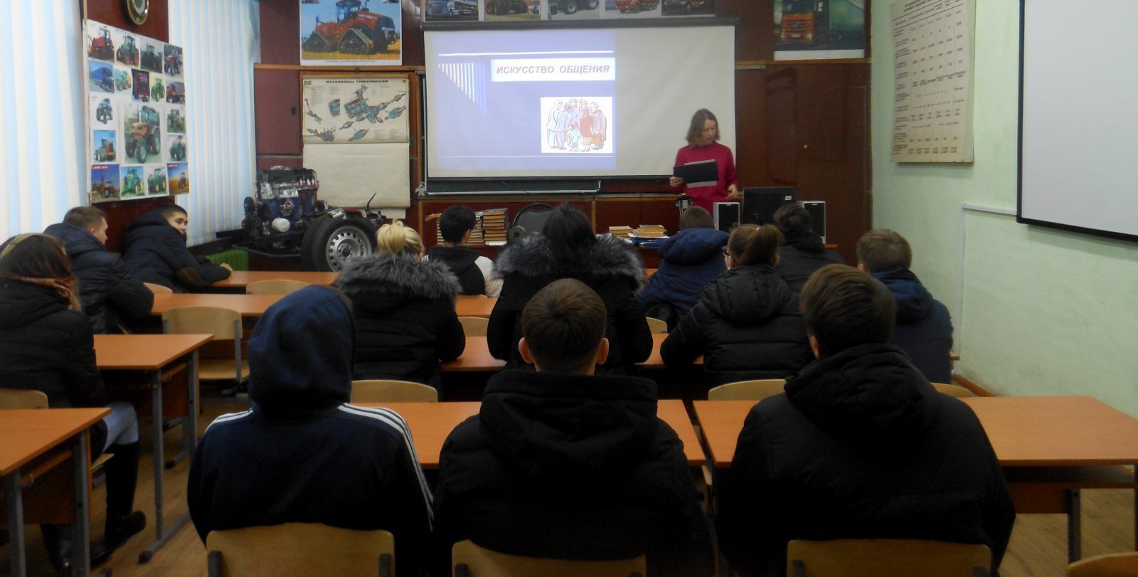 Общение является основным инструментом взаимодействия между людьми. Мы постоянно общаемся с ними в разных ситуациях – на улице, в школе, гостях. Как вести себя? Об этом и рассказывала библиотекарь Центральной библиотеки им. А. М. Рыжова Е. В. Михайлова на уроке, который прошел 20 ноября в социально-экономическом техникуме. Студенты узнали о правилах общения не только при личном контакте с людьми, но и в социальных сетях, по телефону. Им были предложены вопросы для диалога: Что такое общение?