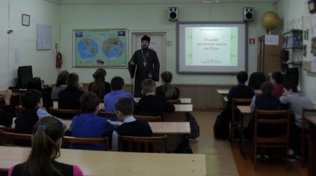 17 марта в воскресной школе прошел урок, посвященный Дню православной книги. Ребята узнали об истории возникновения праздника, о первопечатниках Иване Федорове и Петре Мстиславце, о первой печатной книге «Апостол», о ее уникальных достоинствах. Работник центральной библиотеки, Н. И. Лежнина, рассказала детям о роли православной книги, о том, как нужно обращаться с книгой. Участникам воскресной школы показана презентация и проведена викторина. Победителям викторины - Рубан Елене, Якушкиной Вике, Васениной Тане и Россохиной Оле настоятель Храма Тихвинской иконы Божьей Матери протоиерей Роман Россохин подарил детские православные книги.