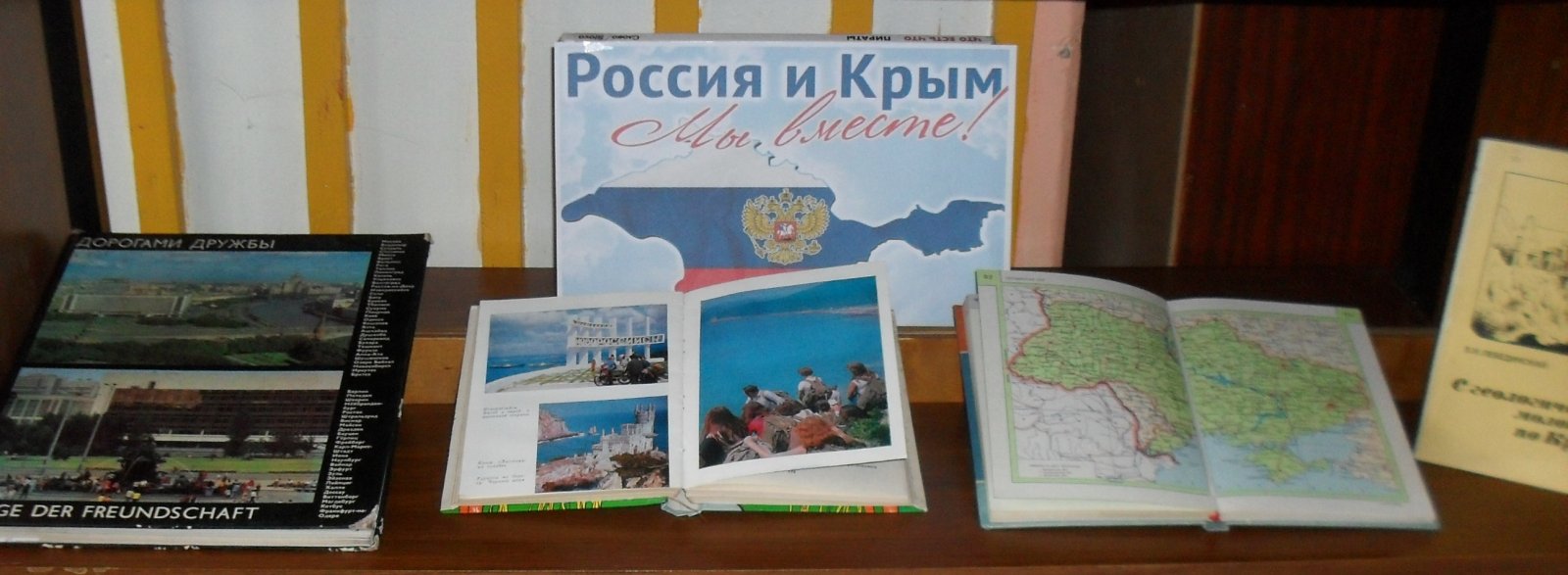 В преддверии годовщины присоединения Крыма к России в Центральной библиотеке им. А. М. Рыжова с детским отделом оформлены книжная выставка и стенд «Частичка России – прекрасный наш Крым».