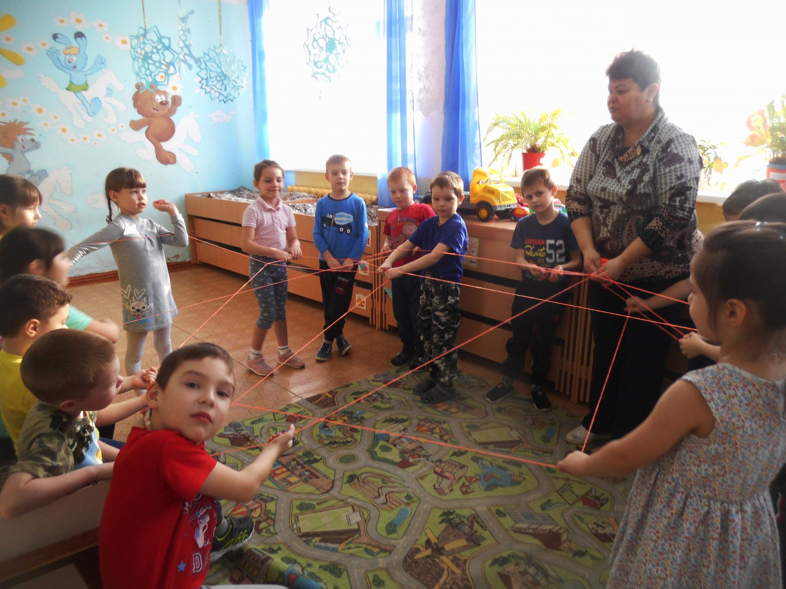 В игре «Нити добра» дети рассказывали о добрых поступках, которые они совершали в последнее время – помогали маме мыть посуду, кормили птиц, хорошо себя вели, не мешали взрослым.