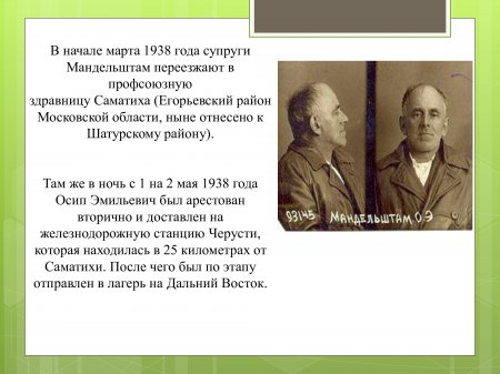 Предлагаем для просмотра презентацию о жизни и творчеству О. Мандельштама.
