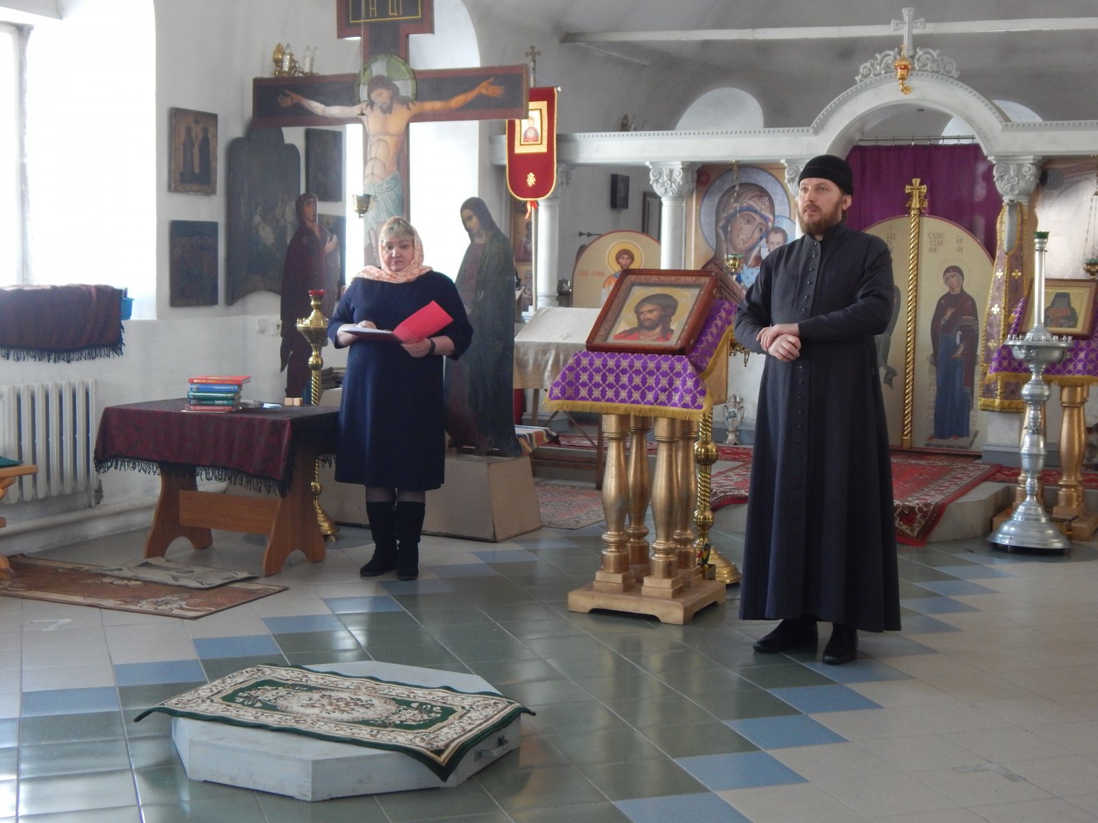 Продолжила мероприятие библиотекарь Л.Г.Беспалова, которая познакомила с биографией святого князя Александра Невского и провела обзор литературы. Затем с присутствующими была проведена викторина, посвященная русскому полководцу. Присутствующие активно участвовали в ней, а лучшие знатоки получили из рук священника книги.