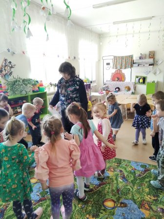 В детском садике № 4 в старшей и средней группах библиотекарь А. А. Бакланова провела познавательно-игровую программу «Полёт в космос».