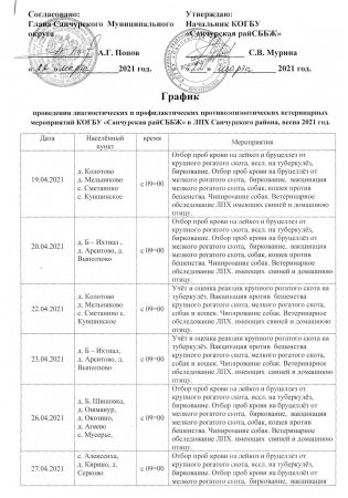 График проведения диагностических и профилактических мероприятий весной 2021 года