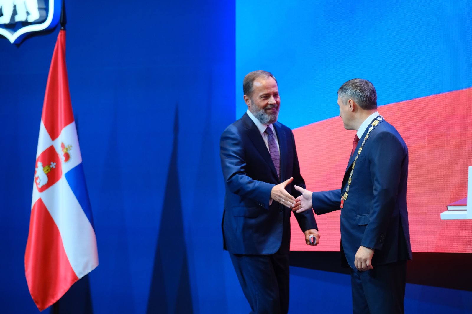18 сентября 2025 года в Перми в большом зале Пермской краевой филармонии полномочный представитель Президента России в ПФО Игорь Комаров принял участие в торжественной церемонии официального вступления Дмитрия Махонина в должность губернатора Пермского края.