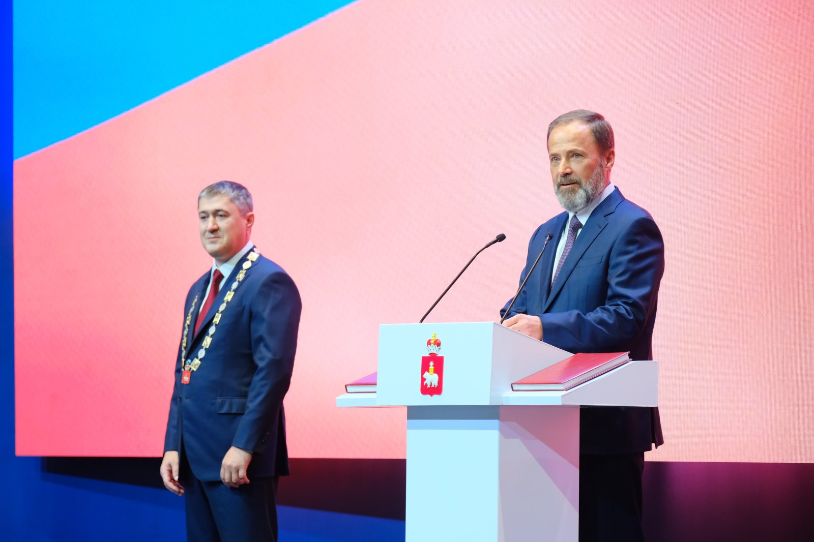 В своем выступлении Дмитрий Махонин поблагодарил Главу государства, Правительство РФ и жителей региона за поддержку и развитие Прикамья на протяжении пяти лет: «За это время произошло большое количество событий, и Пермский край вместе со всей страной преодолел много вызовов, проявляя пермский характер. Благодарю всех жителей региона, кто спасает жизни, защищает Отечество, строит и работает на заводах, развивает промышленность, трудится в сельском хозяйстве, воспитывает подрастающее поколение и всех, кто ответственно относится к своему делу. Нам предстоит сделать еще многое, и для этого есть колоссальный опыт — жизненный пример наших ветеранов, амбициозная молодежь, а также желание и умение работать на благо региона. Наша цель — вывести Пермский край в технологические лидеры регионов России. Главное — не менять курс и жизненные ориентиры».