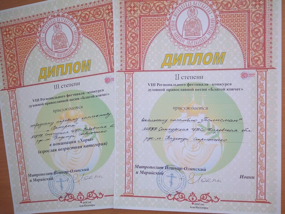 Санчурский РДК представляли два коллектива под руководством Надежды Анатольевны Стриженко. Результатом участия стали дипломы II степени ансамбля «Талисман» и диплом III степени народного хорового коллектива «Ветеран».