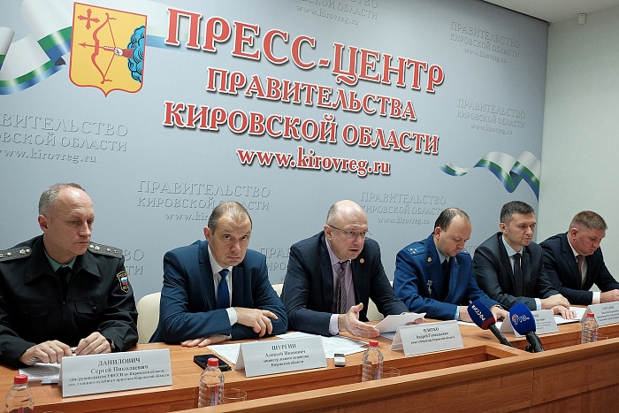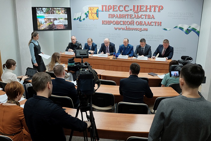В правительстве Кировской области состоялась пресс-конференция, посвящённая итогам работы межведомственной рабочей группы по профилактике незаконной заготовки и оборота древесины на территории региона за 2019 год. Участие в мероприятии приняли вице-губернатор Кировской области Андрей Плитко, министр лесного хозяйства региона Алексей Шургин, а также члены межведомственной рабочей группы – представители УМВД, Следственного комитета, прокуратуры, службы судебных приставов и налоговой службы по Кировской области.