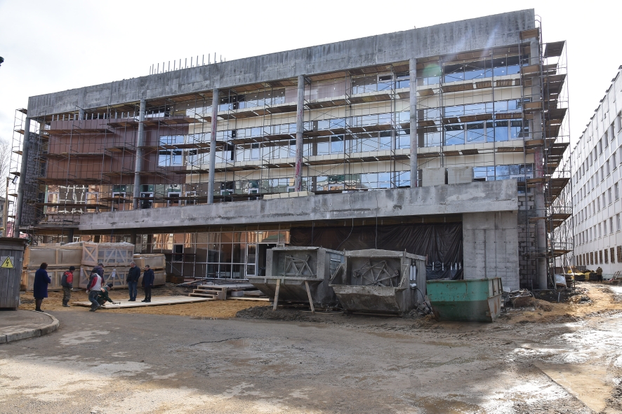 Главный врач перинатального центра Ирина Виноградова рассказала полпреду, что строительство ведётся с июня 2020-го года на средства федерального и республиканского бюджетов. Новый трехэтажный корпус общей площадью 4,99 тыс. кв. м. расположен около основного здания перинатального центра 1961-1983 годов постройки и соединится с ним теплым переходом.