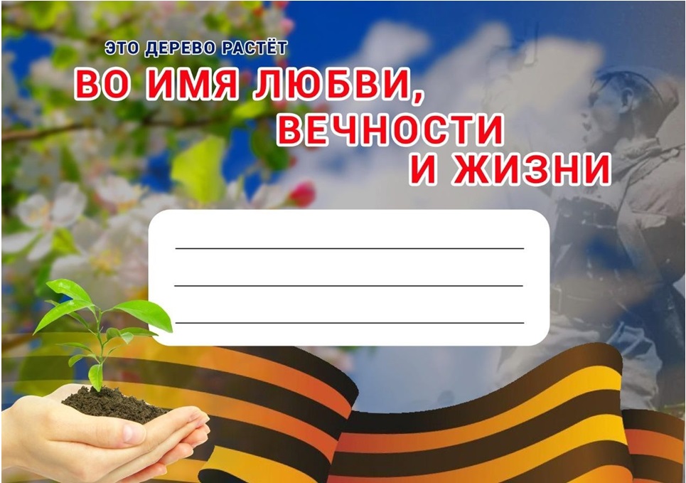 - Разместить информацию о Вашем участии в IX Всероссийской (с международным участием) эколого-патриотической акции «ВО ИМЯ ЛЮБВИ, ВЕЧНОСТИ И ЖИЗНИ», посвященной 77-летию Победы в Великой Отечественной войне и Году культурного наследия народов России, на доступных Вам электронных ресурсах: сайтах и/ или в социальных сетях. Указать об этом в заявке-отчёте в виде ссылок.