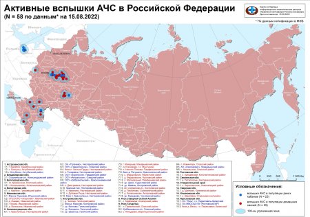 Активные вспышки гриппа птиц на территории Российской Федерации в 2022 г.